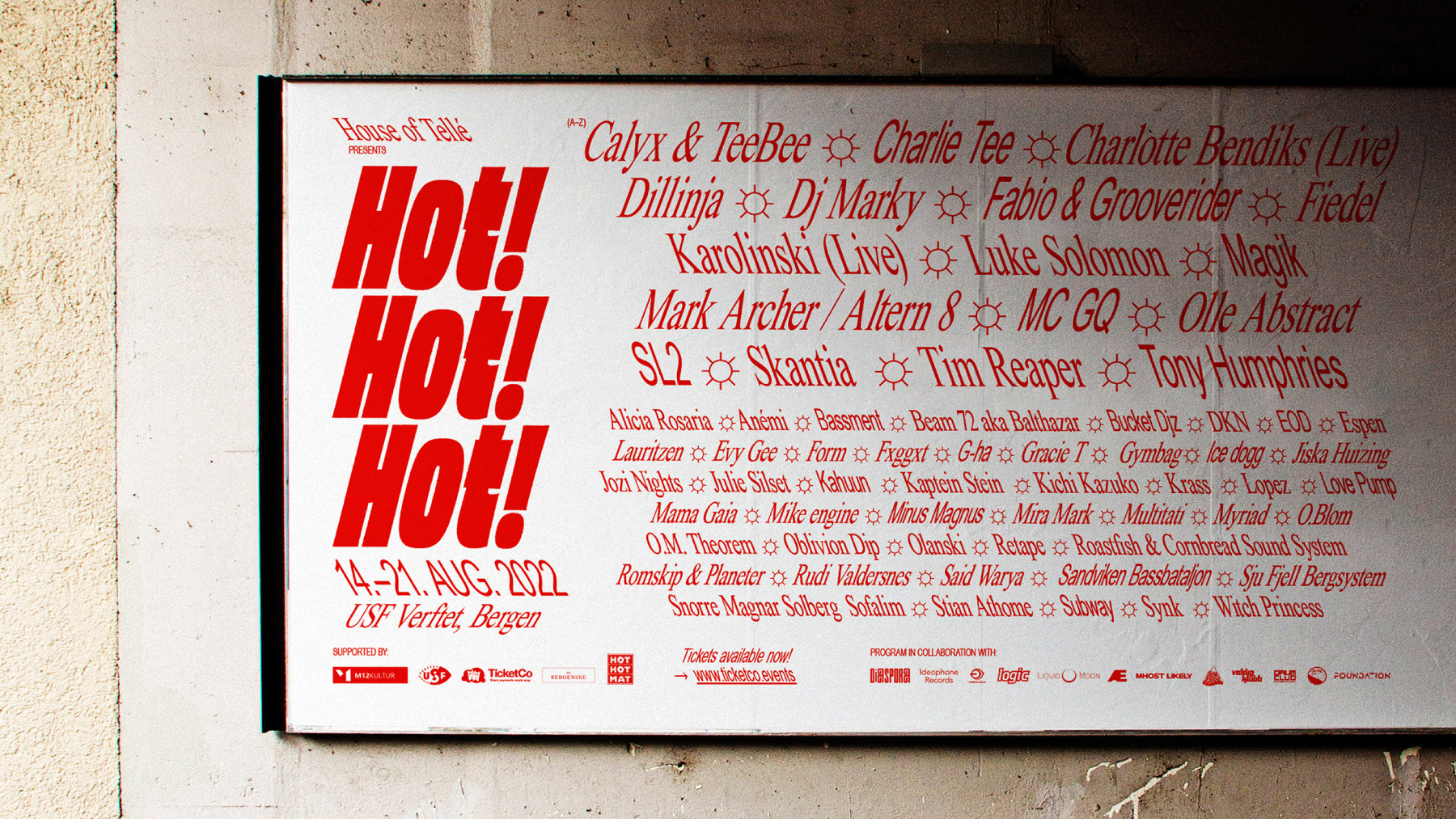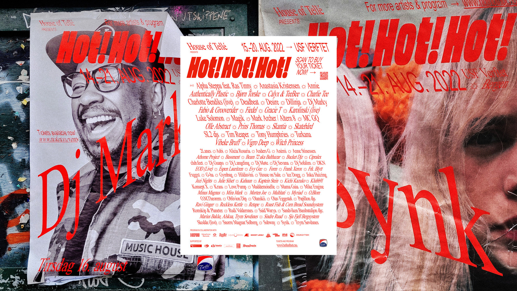 Hot! er akronymet for House of Tellé – en pådriver for norsk elektronisk musikk siden 90-tallet. Hot!Hot!Hot! er en festival hvor det som rører seg i undergrunnen av elektronisk musikk blir presentert for et større publikum.